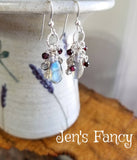 Labradorite Gemstone Briolette Earrings Sterling Silver Wire Wrapped with Moonstone & Garnet